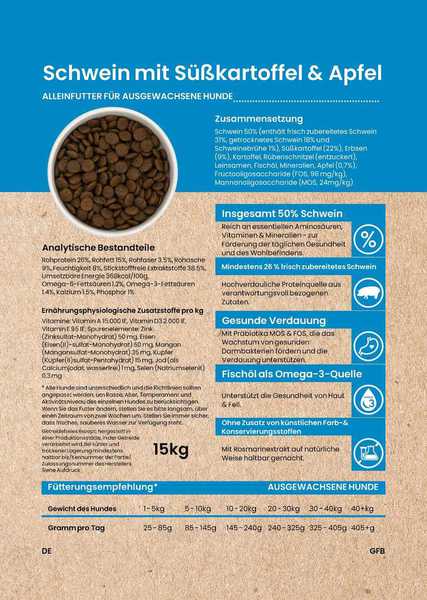 Schwein mit Süßkartoffel & Apfel 15 Kg 90 €